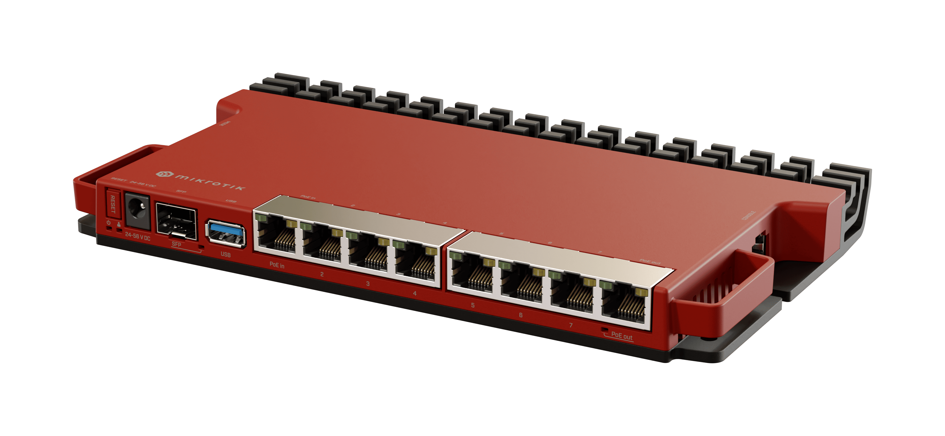 For ultimate efficiency, the L009 pairs perfectly with MikroTik’s RB5009 PoE-out routers, enabling clean power distribution and ultra-dense rack deployments.